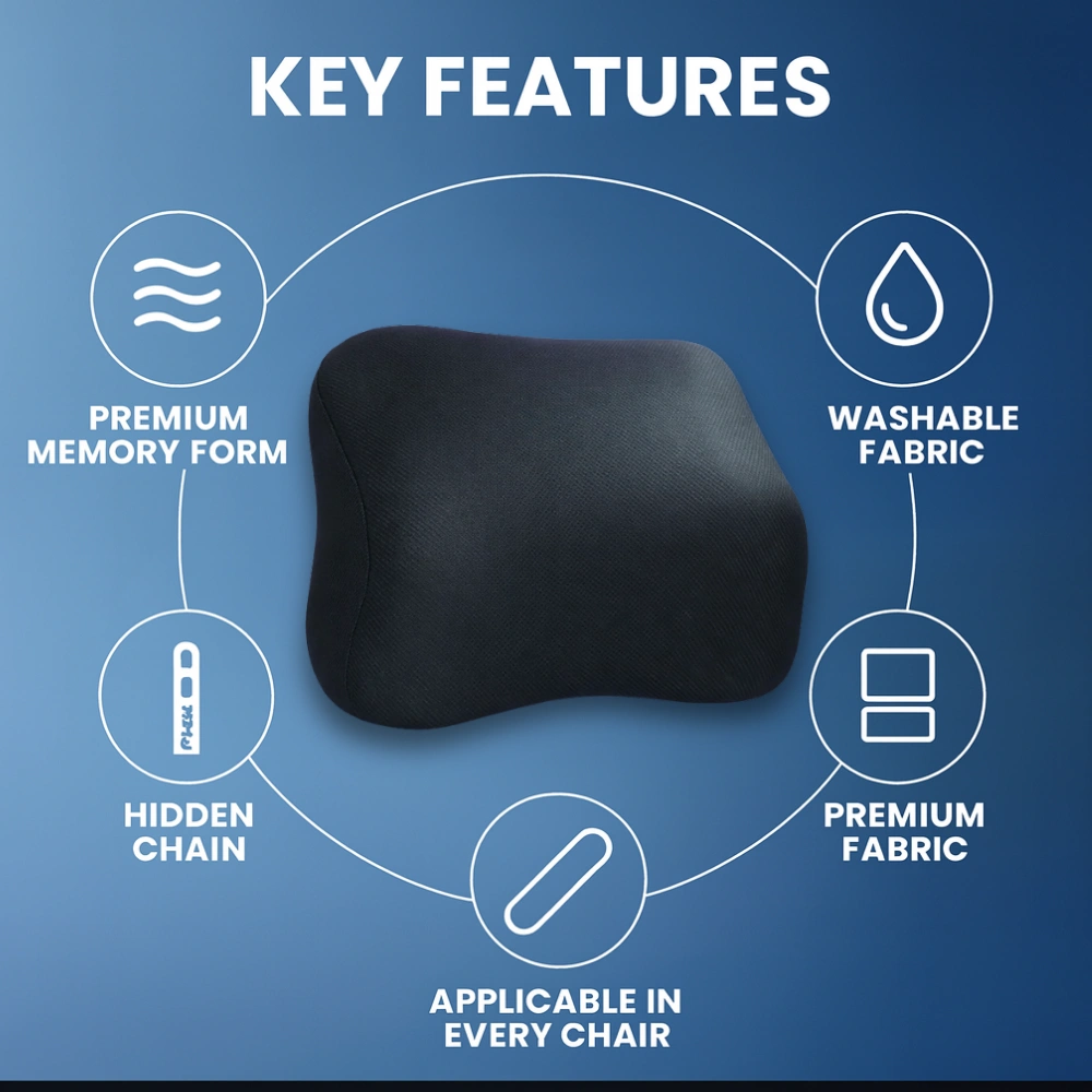 Compact ergonomic support cushion designed to provide comfortable support for your lower back or neck, helping reduce strain during sitting or resting.