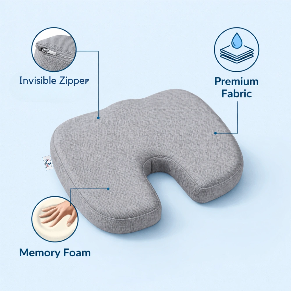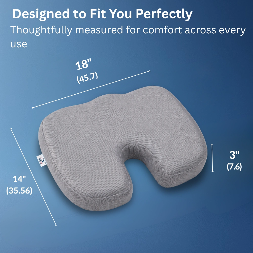 The FirstNap Coccyx Seat Cushion is ergonomically designed to provide targeted support and comfort during extended sitting. Its U-shaped cut-out design helps reduce pressure on the tailbone by suspending the coccyx area, promoting better posture and balanced weight distribution. Ideal for office chairs, car seats, or home use, it enhances sitting comfort and reduces lower back strain.