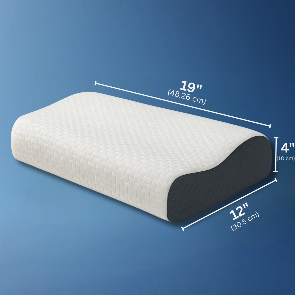 Ergonomically contoured memory foam pillow designed to support your neck and spine alignment for pain-free, restful sleep.