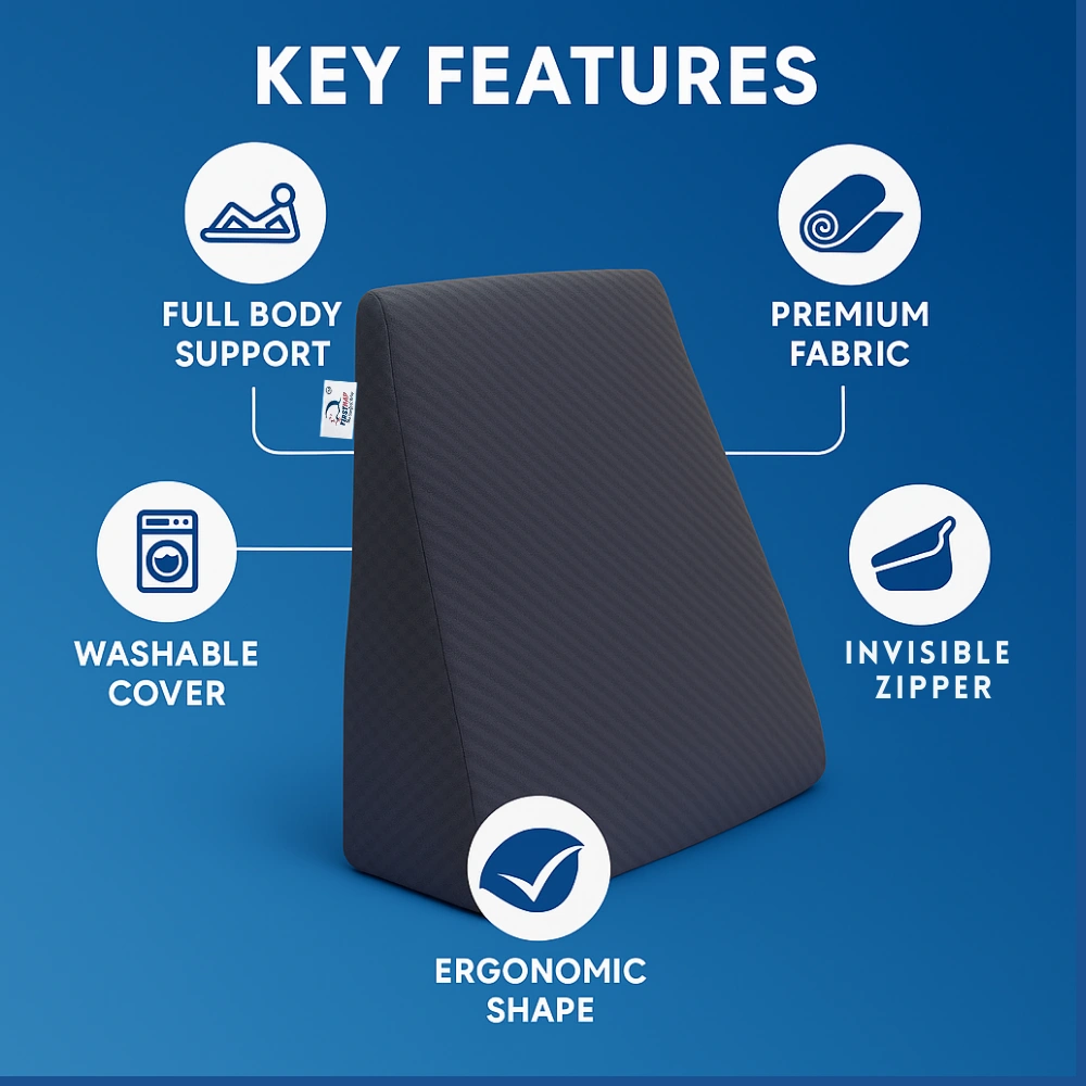 The FirstNap Wedge Pyramid Pillow is designed to provide elevated support for improved comfort while resting or sleeping. Its wedge-shaped profile helps raise the upper body or legs in a stable and comfortable position.