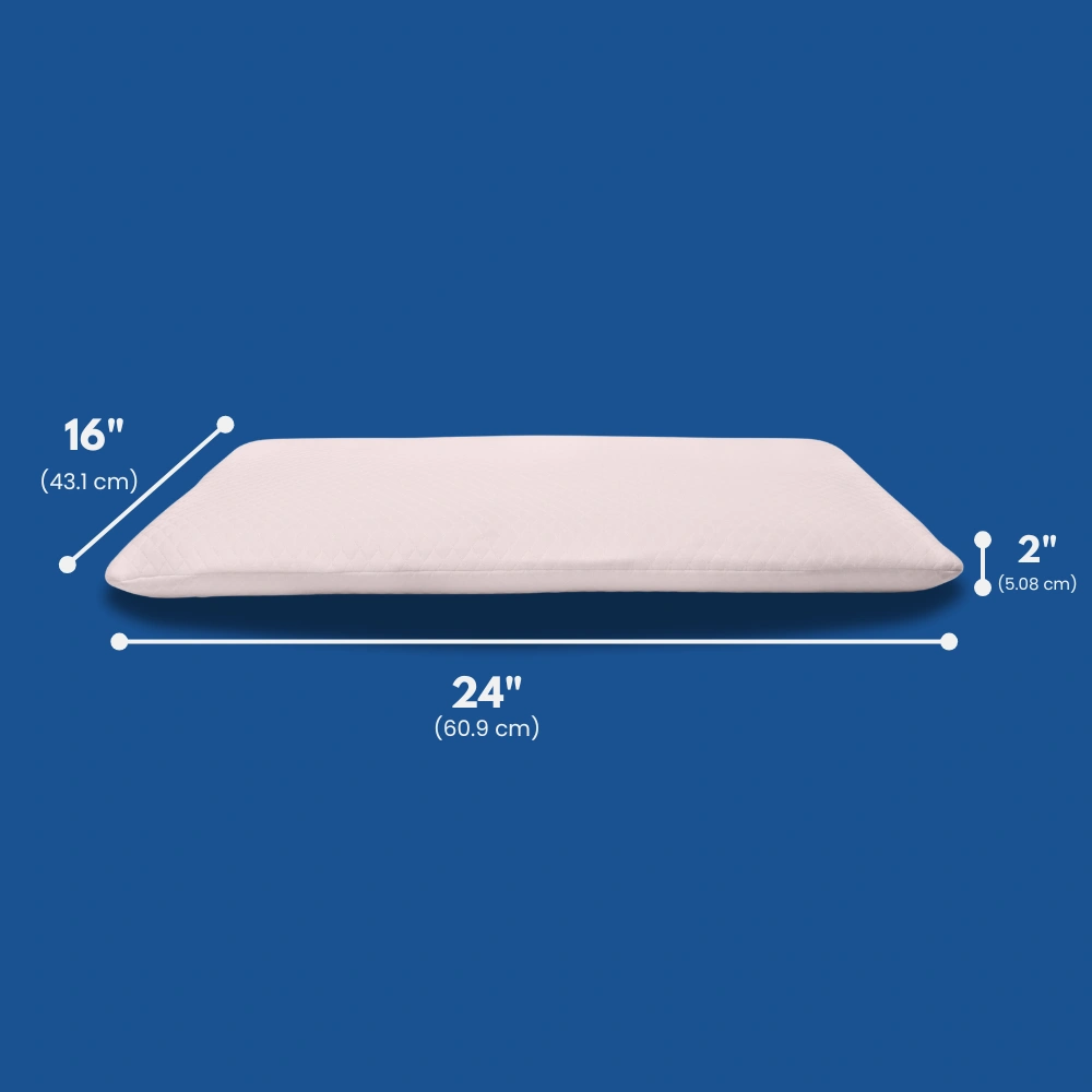 Minimal, flat-profile comfort pillow designed for gentle head and neck support.
